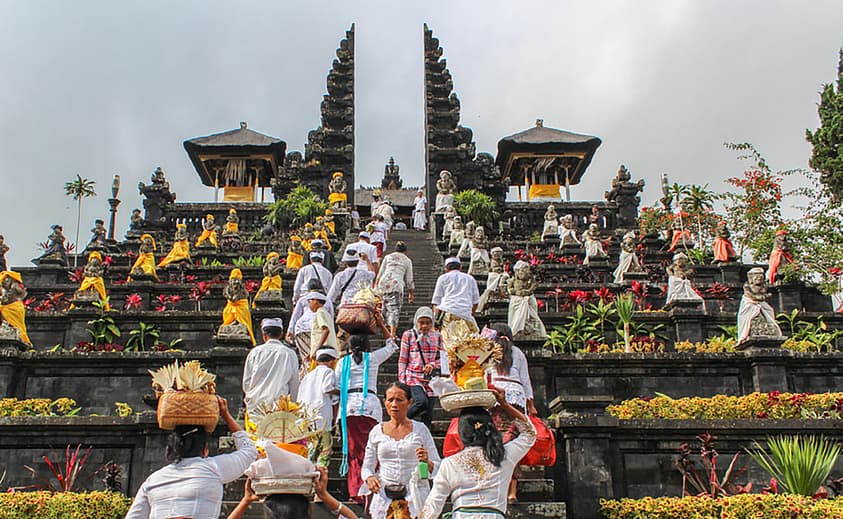 - Bali hosts ancient exotic rituals and ceremonies in numerous temples every day. The main religion is Balinese Hinduism.