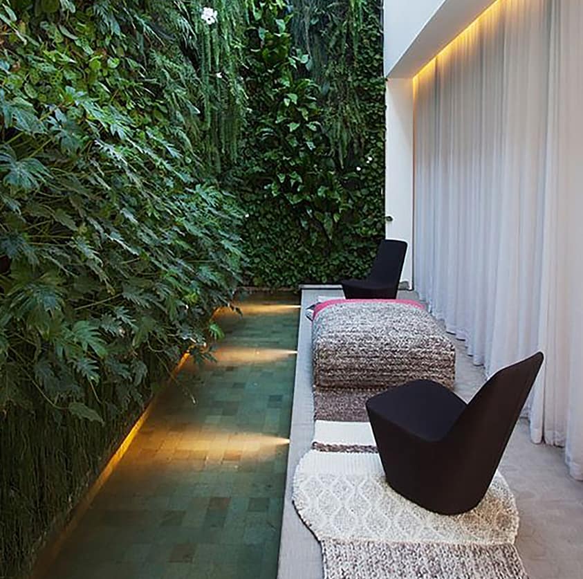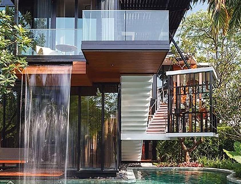 - A combination of waterfalls and ventilation systems results in natural air conditioning in the villas.