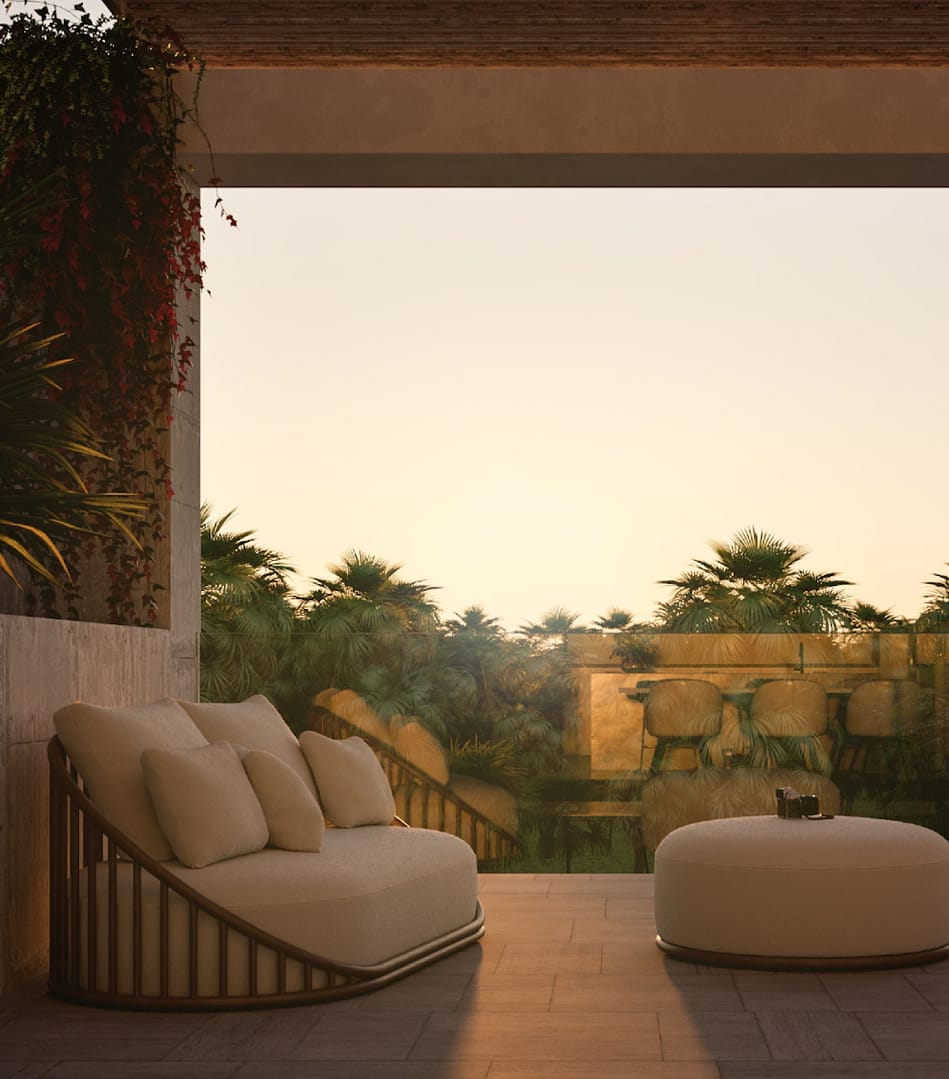 The design combines the clear lines of the primary structure with fine details and local materials. Combined with plants, waterfalls, and a modern lighting concept, we create a luxurious living space that seamlessly merges with nature.